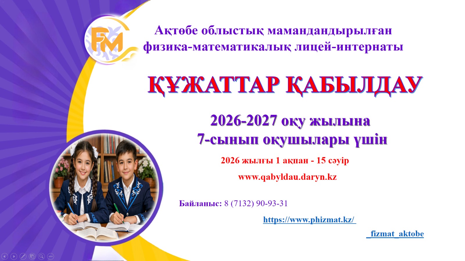 2026-2027 оқу жылына қабылдау үшін 6-сынып оқушыларына конкурс жарияланады